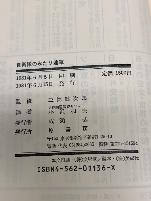 タイトル:自衛隊のみたソ連軍―陸海空の対ソ防衛戦略 原書房 小沢和夫