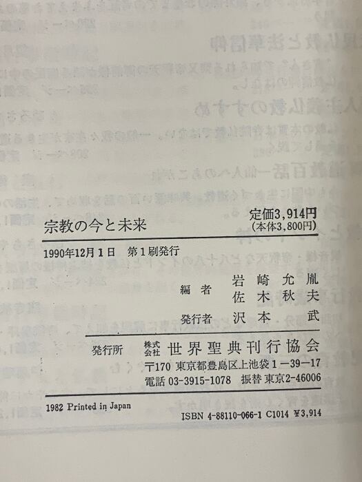 タイトル:宗教の今と未来 世界聖典刊行協会 岩崎 允胤