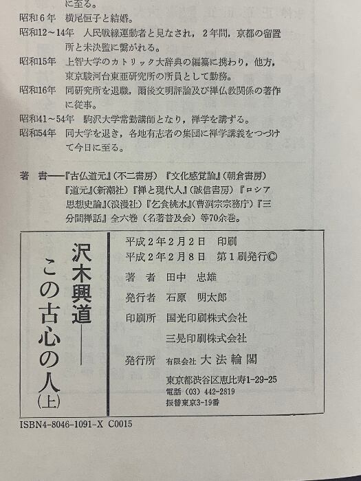 タイトル:沢木興道-この古心の人 上 大法輪閣 田中 忠雄