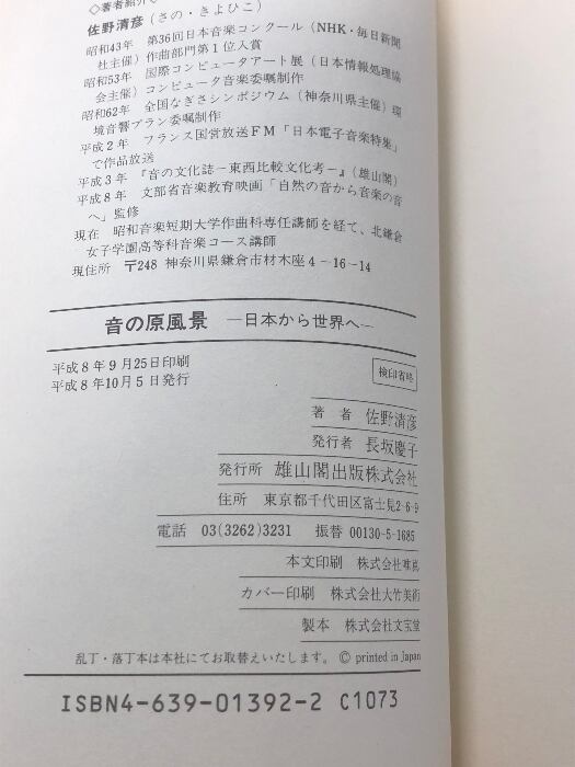 タイトル:音の原風景: 日本から世界へ 雄山閣 佐野 清彦