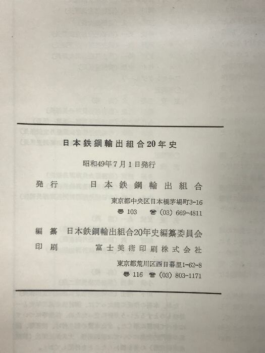タイトル:日本鉄鋼輸出組合二十年史 昭和49年 発行:日本鉄鋼輸出組合