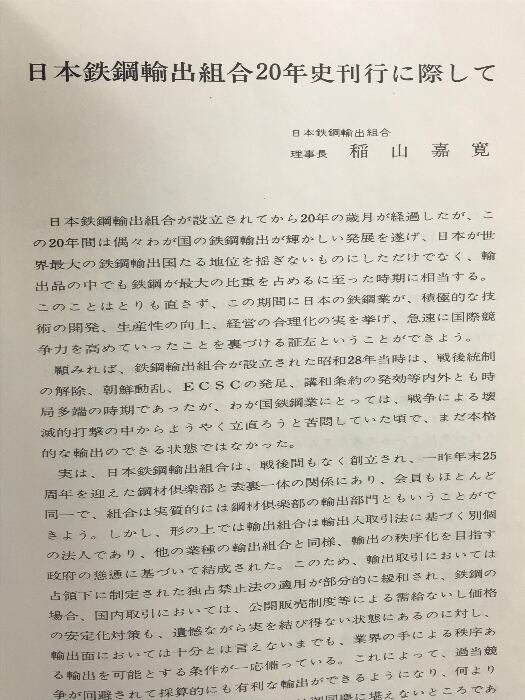 日本鉄鋼輸出組合二十年史 昭和49年 発行:日本鉄鋼輸出組合