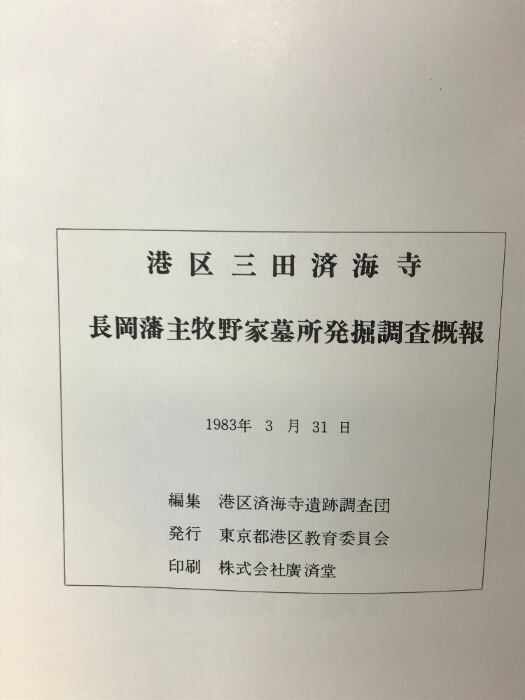 港区三田済海寺 長岡藩主牧野家墓所発掘調査概報 1983年 発行:東京都港区教育委員会