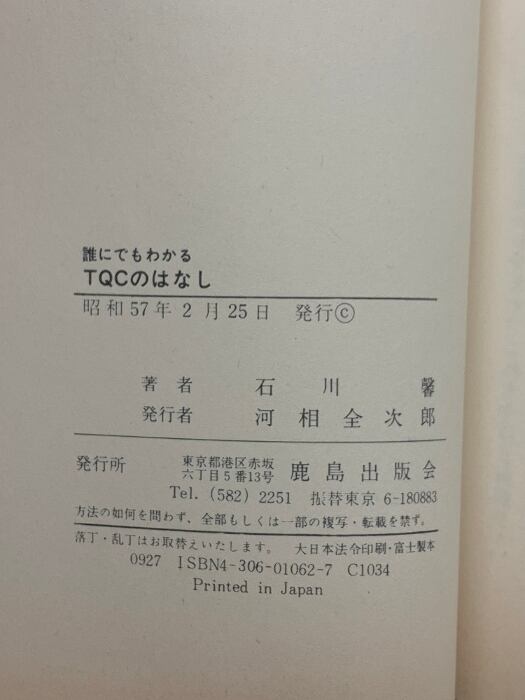 誰にでもわかるTQCのはなし 鹿島出版会 石川 馨