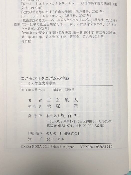 タイトル:コスモポリタニズムの挑戦: その思想史的考察 (政治理論のパラダイム転換) 風行社 古賀 敬太
