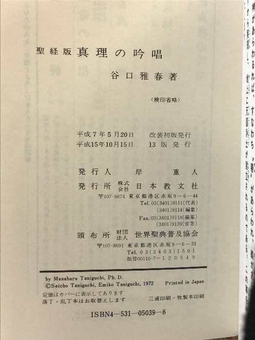 タイトル:聖経版 真理の吟唱 日本教文社 谷口 雅春