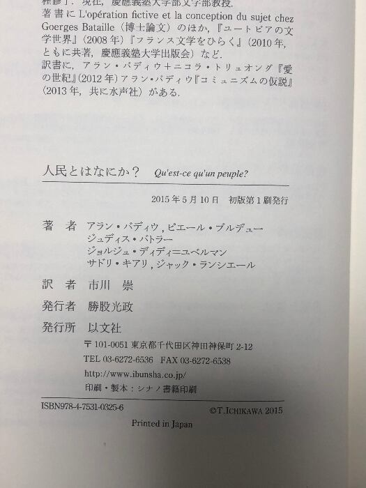 タイトル:人民とはなにか? 以文社 アラン・バディウ