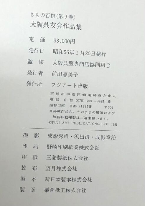 タイトル:図録 きもの百選 第9巻 大阪呉友会作品集 フジアート出版