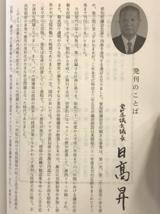 愛知県議会史(第14巻)自:昭和62年度 至:平成6年度 発行:愛知県議会 【非売品】