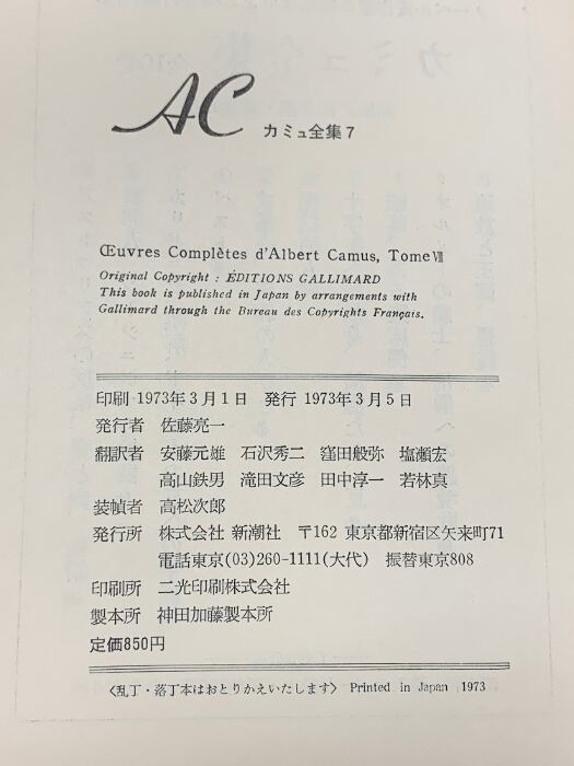 タイトル:カミュ全集〈7〉十字架への献身・精霊たち・夏 新潮社