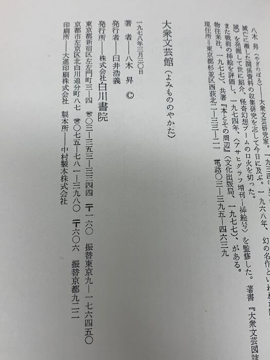 大衆文芸館―興隆期の大衆文芸 白川書院 八木 昇
