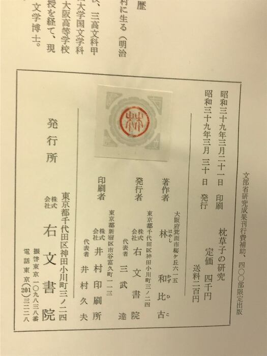 タイトル:枕草子の研究 (文部省助成/限定出版)発行:右文書院 著:文学博士 林和比古 昭和39年