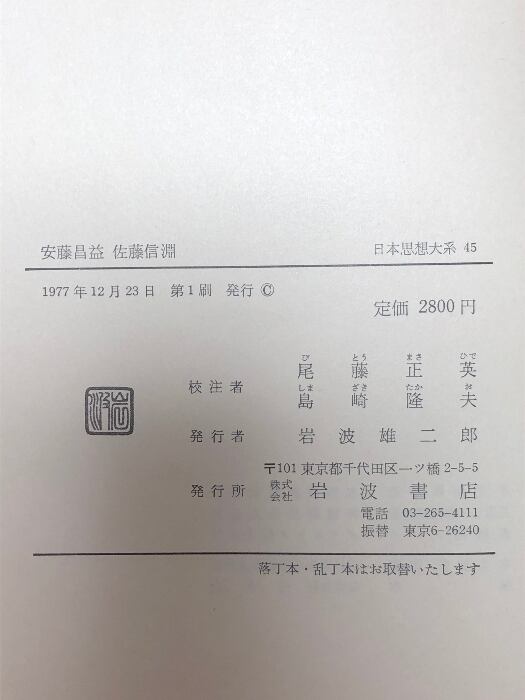 タイトル:日本思想大系〈45〉安藤昌益・佐藤信淵 (1977年) 尾藤正英 岩波書店