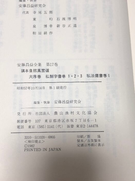 安藤昌益全集〈第17巻〉復刻 (1982年) 農山漁村文化協会 安藤 昌益