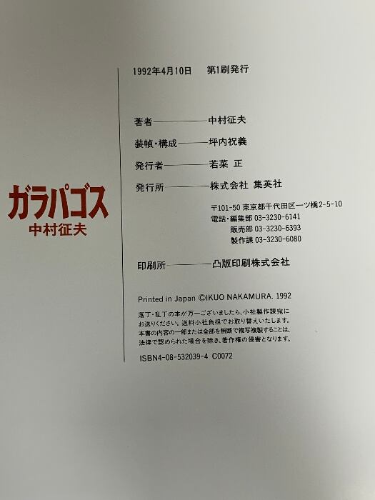 作品集 ガラパゴス 太古を伝える野生 集英社 中村 征夫