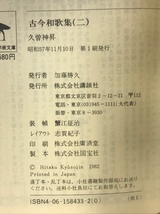 古今和歌集 2 (講談社学術文庫 433) 講談社 久曾神 昇