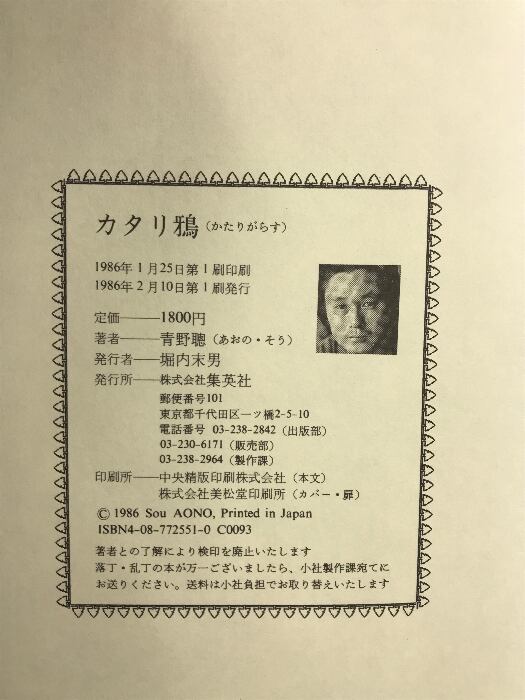 この小説は、鴉の声で語られた、つまり近未来からの視点で書かれた、狂乱の現代史である。