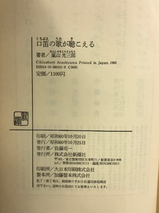 タイトル:口笛の歌が聴こえる 新潮社 嵐山 光三郎