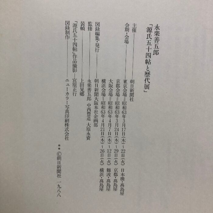 図録 永楽善五郎 源氏五十四帖と歴代展 1988 朝日新聞