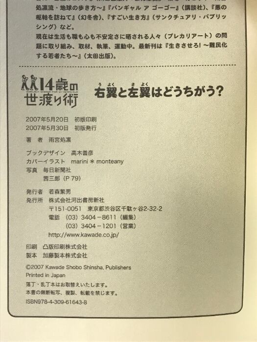 タイトル:右翼と左翼はどうちがう? (14歳の世渡り術) 河出書房新社 雨宮 処凛