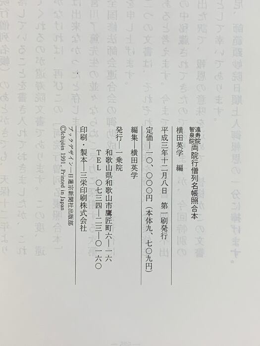 遠寿院 智泉院 両院行僧列名照合本 横田英学 平成3年 一乗院