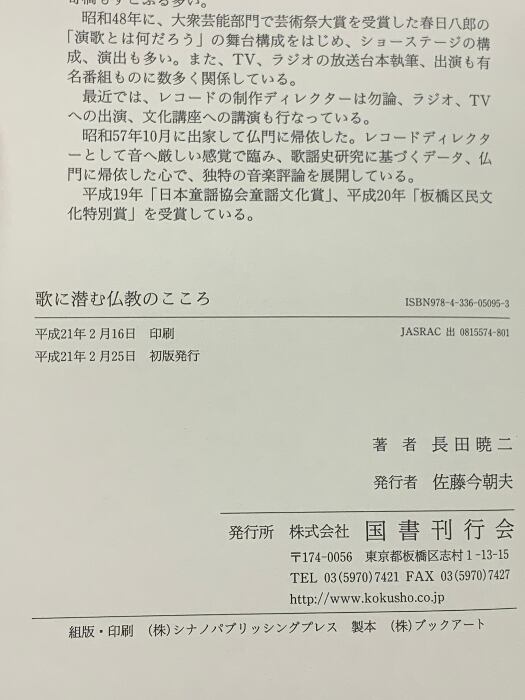 タイトル:歌に潜む仏教のこころ 国書刊行会 長田 暁二