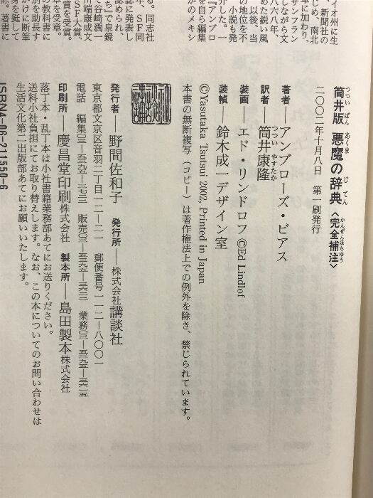 筒井版 悪魔の辞典 講談社 アンブローズ ビアス