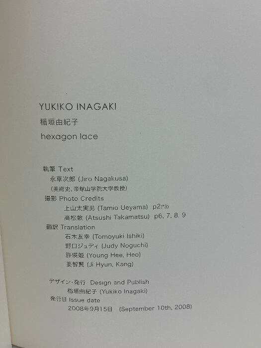 タイトル:図録 YUKIKO INAGAKI hexagon lace 2008年 稲垣由紀子