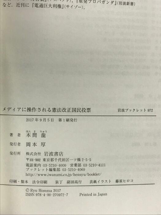 メディアに操作される憲法改正国民投票 (岩波ブックレット) (No.972)。岩波書店 本間 龍