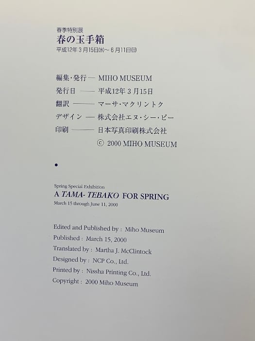 タイトル:図録 春季特別展 春の玉手箱 平成12年 MIHO MUSEUM