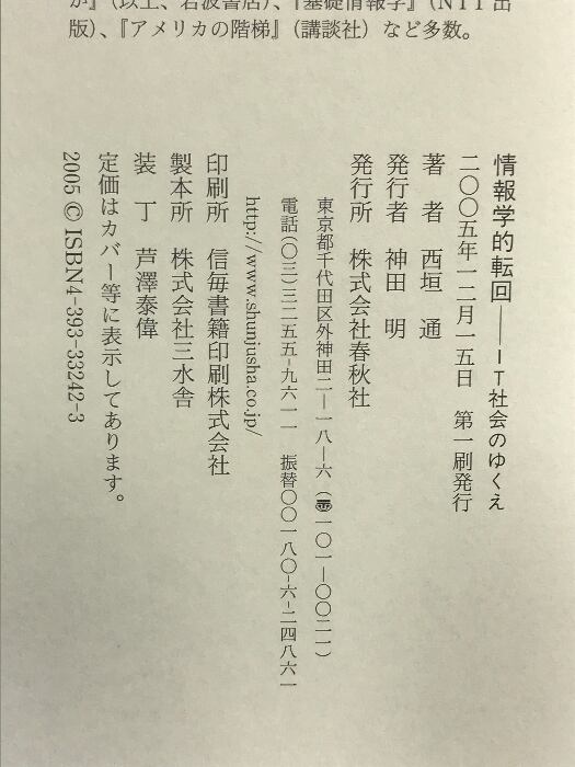 タイトル:情報学的転回: IT社会のゆくえ 春秋社 西垣 通