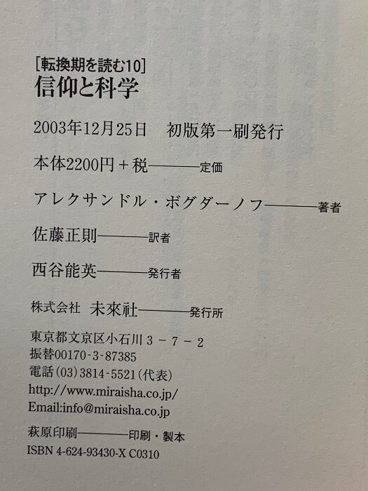 タイトル:信仰と科学 (転換期を読む 10) 未来社 アレクサンドル ボグダーノフ
