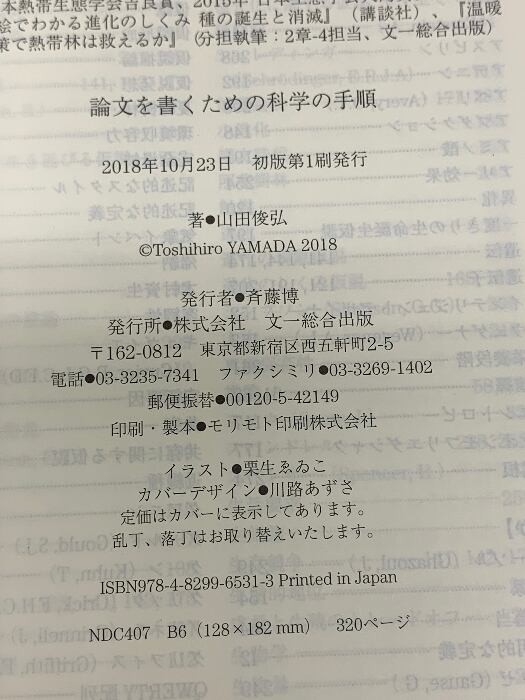 論文を書くための科学の手順 文一総合出版 山田 俊弘