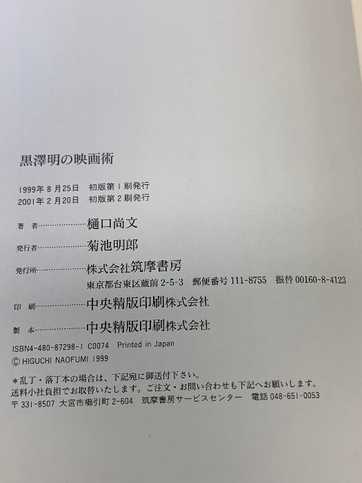 タイトル:黒澤明の映画術 筑摩書房 樋口 尚文