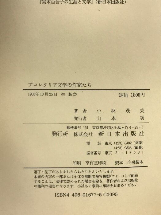 プロレタリア文学の作家たち 新日本出版社 小林 茂夫
