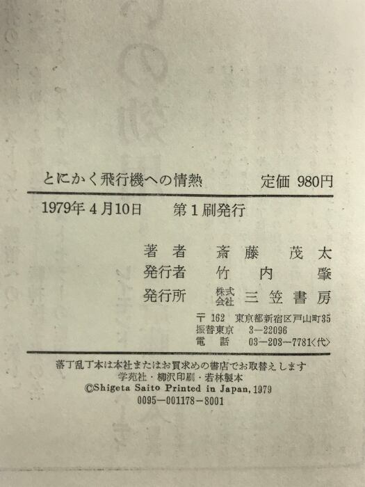タイトル:とにかく飛行機への情熱 三笠書房 斎藤茂太 1979年