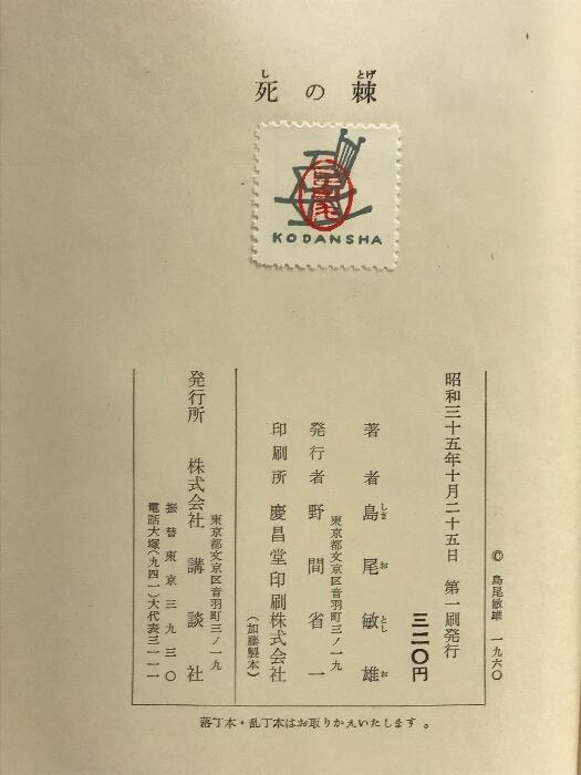 タイトル:死の棘 講談社 島尾 敏雄