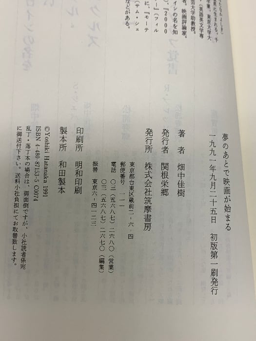 タイトル:夢のあとで映画が始まる 筑摩書房 畑中 佳樹