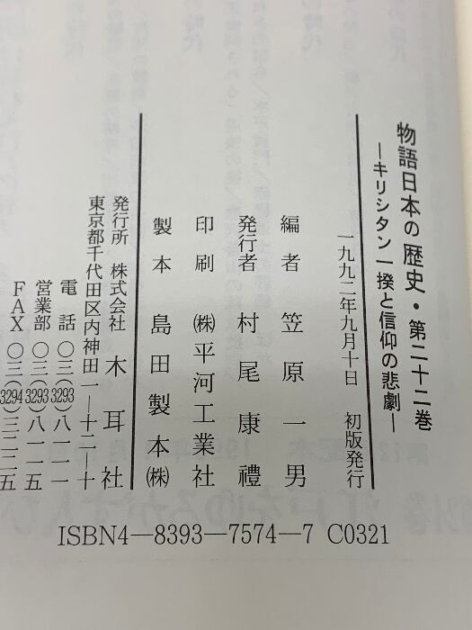 タイトル:物語日本の歴史: その時代を見た人が語る (第22巻) キリシタン一揆と信仰の悲劇 木耳社 笠原 一男