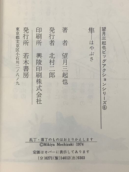 タイトル:隼 望月三起也ビッグアクションシリーズ 6 コミック 若木書房 望月三起也