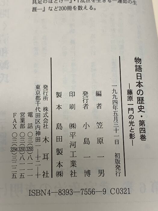 物語日本の歴史: その時代を見た人が語る (第4巻) 藤原一門の光と影 木耳社 笠原 一男