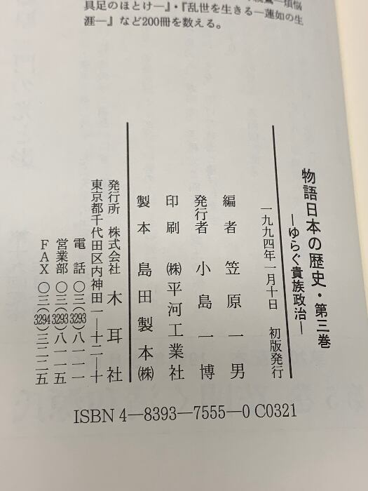 タイトル:物語日本の歴史: その時代を見た人が語る (第3巻) 揺らぐ貴族政治 木耳社 笠原 一男