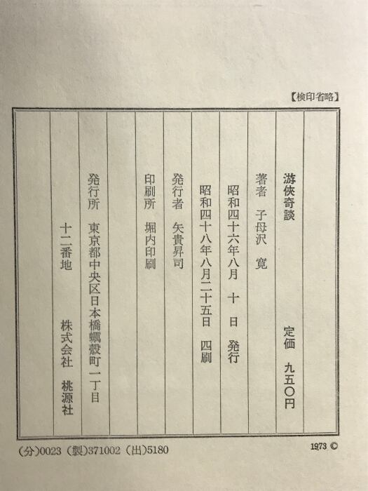 タイトル:游俠奇談 桃源社 子母澤寛 昭和48年