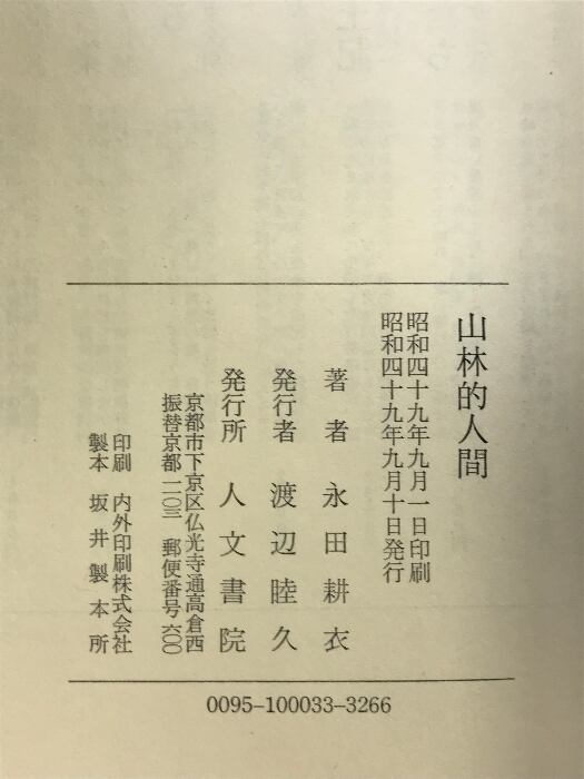 タイトル:山林的人間 人文書院 永田耕衣
