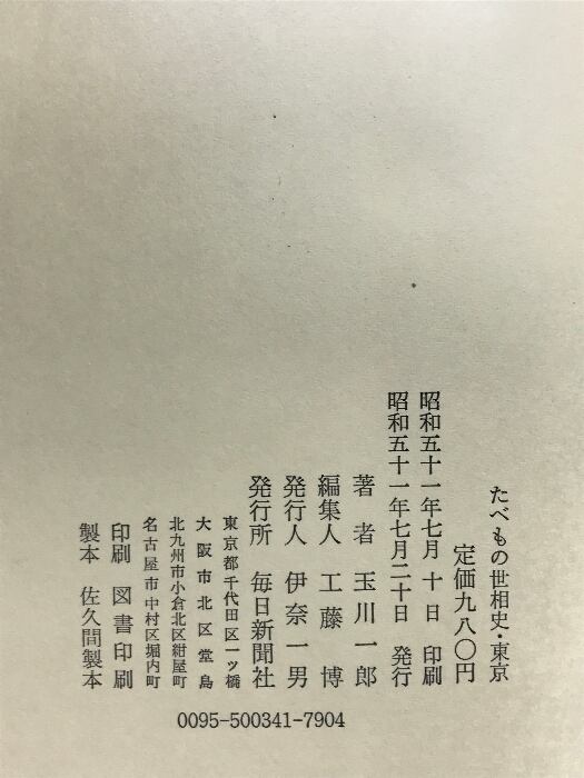 たべもの世相史・東京 毎日新聞社 玉川一郎