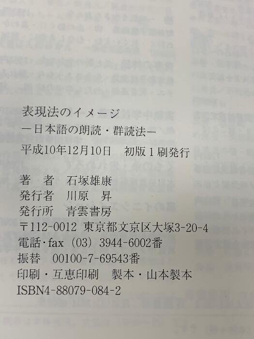 タイトル:表現法のイメージ: 日本語の朗読・群読法 青雲書房 石塚 雄康