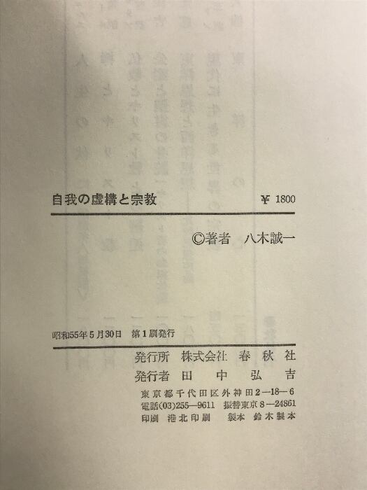 タイトル:自我の虚構と宗教 春秋社 八木 誠一