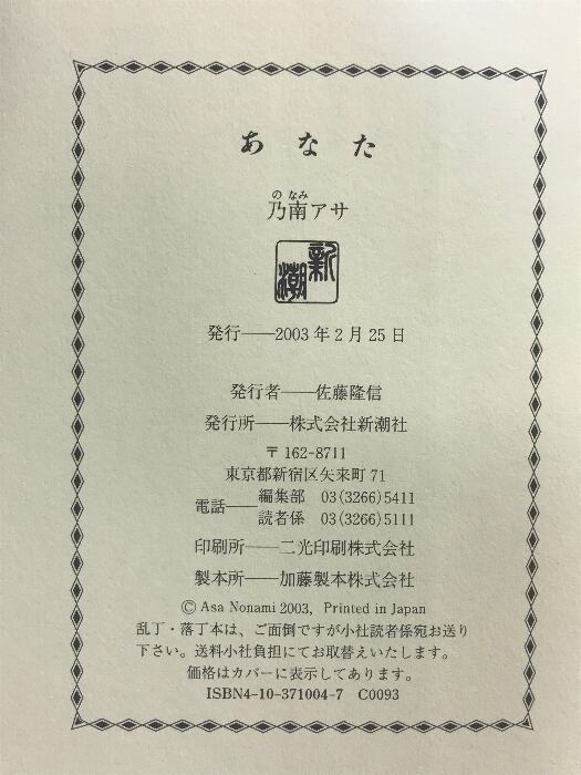 あなた 新潮社 乃南 アサ