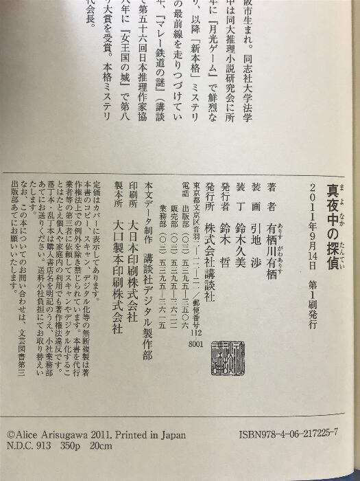 タイトル:真夜中の探偵 (特別書き下ろし) 講談社 有栖川 有栖