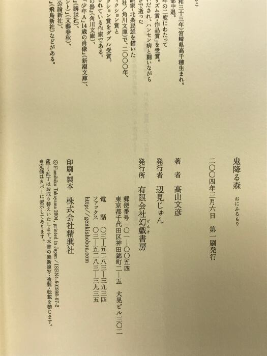 タイトル:鬼降る森 幻戯書房 高山 文彦